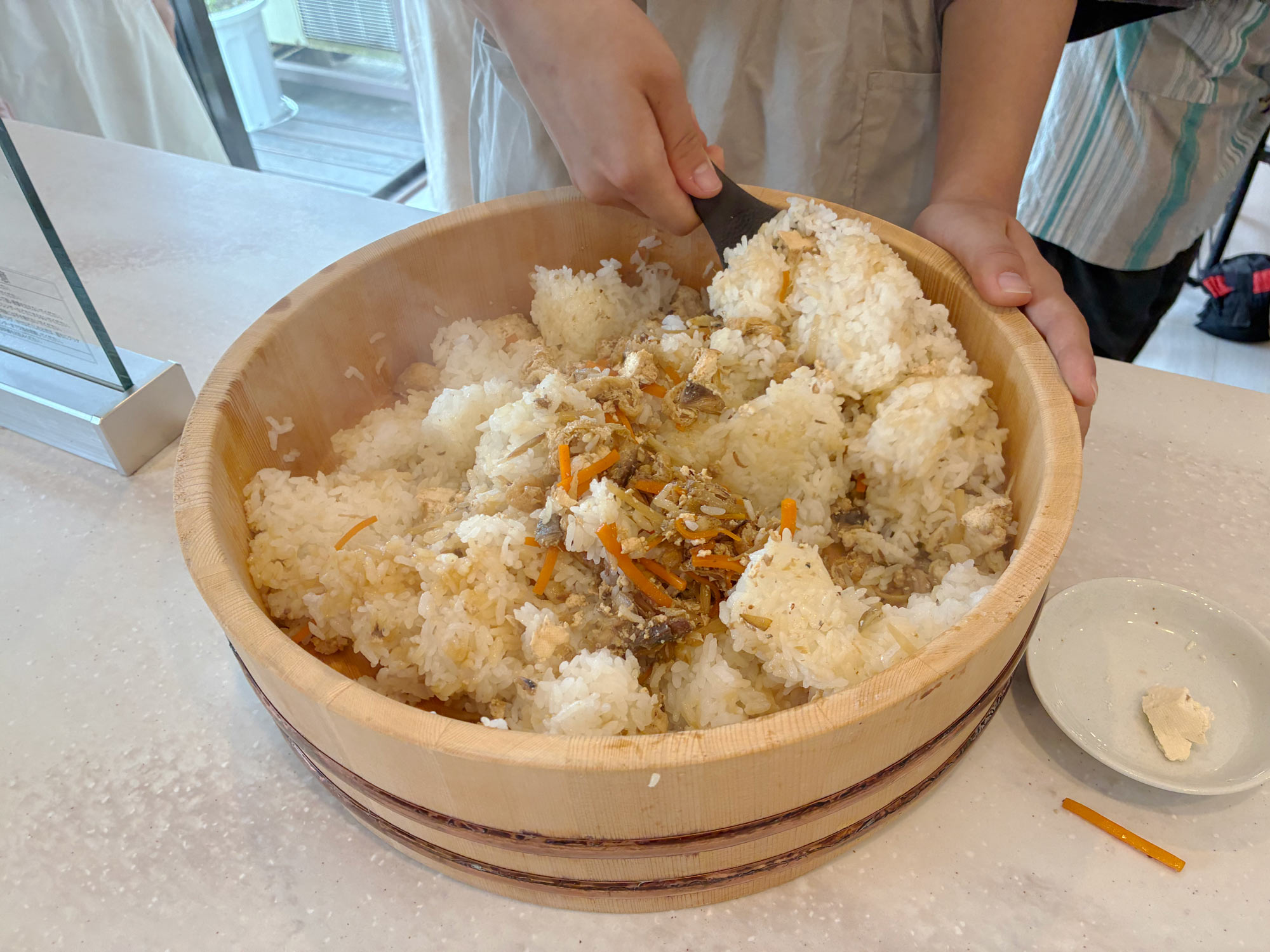 - 最後にしょうゆを加えて汁気がなくなるまで炒め合わせ、炊いたご飯に炒めた具材をのせ、10分蒸らしたら、豆腐を崩しすぎないよう気をつけながら全体を混ぜ合わせる。